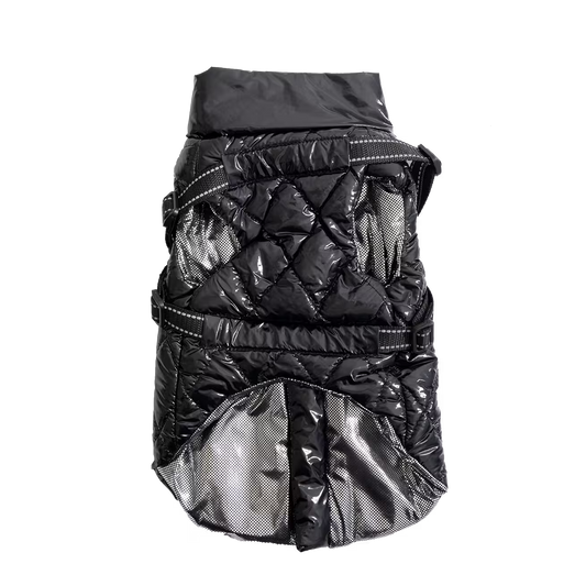 UniQ odeća za kućne ljubimce, PU zimski prsluk sa ugrađenim pojasom i reflektujućim detaljima, crna
