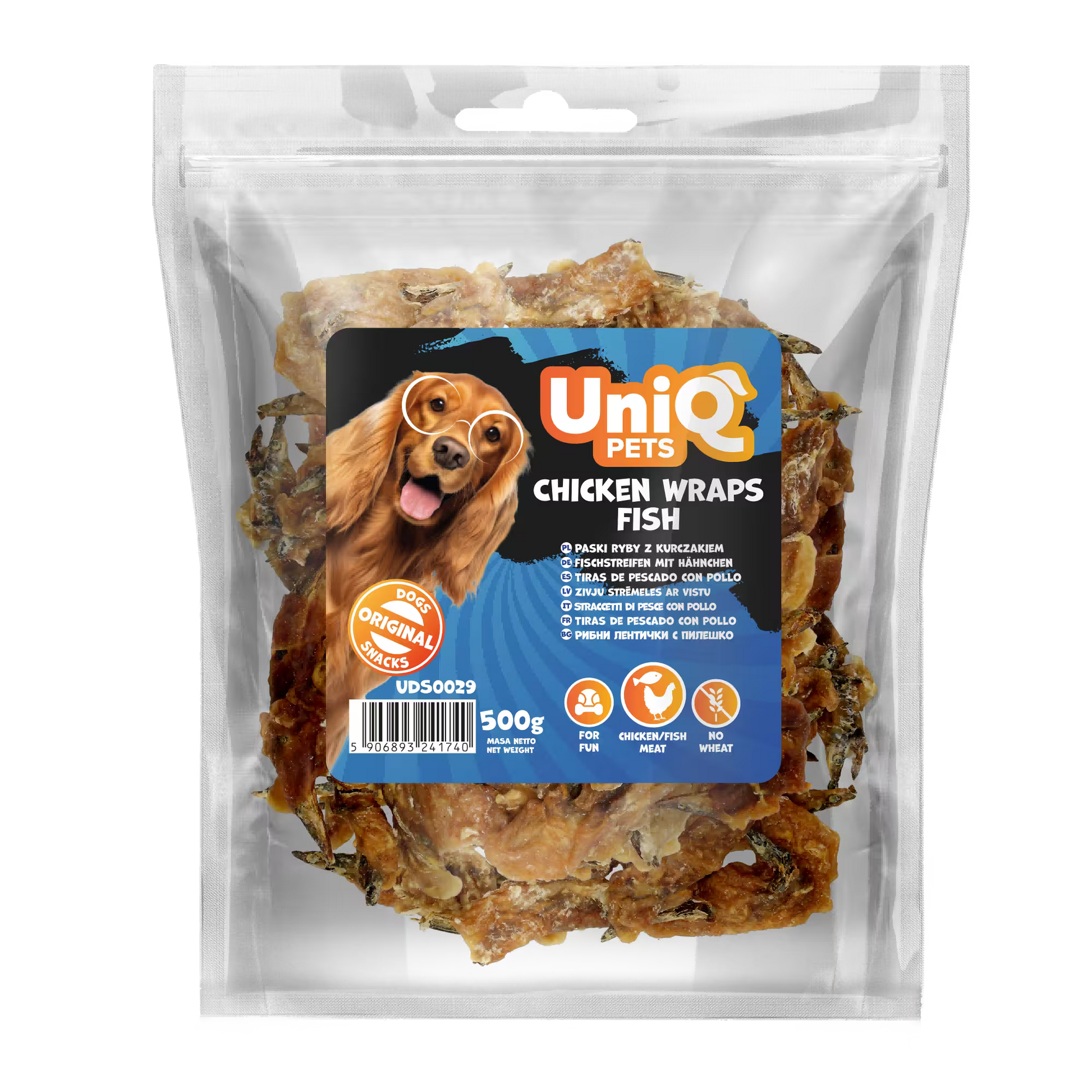 UniQ poslastice za psa, 500g, piletina obmotana sa ribom