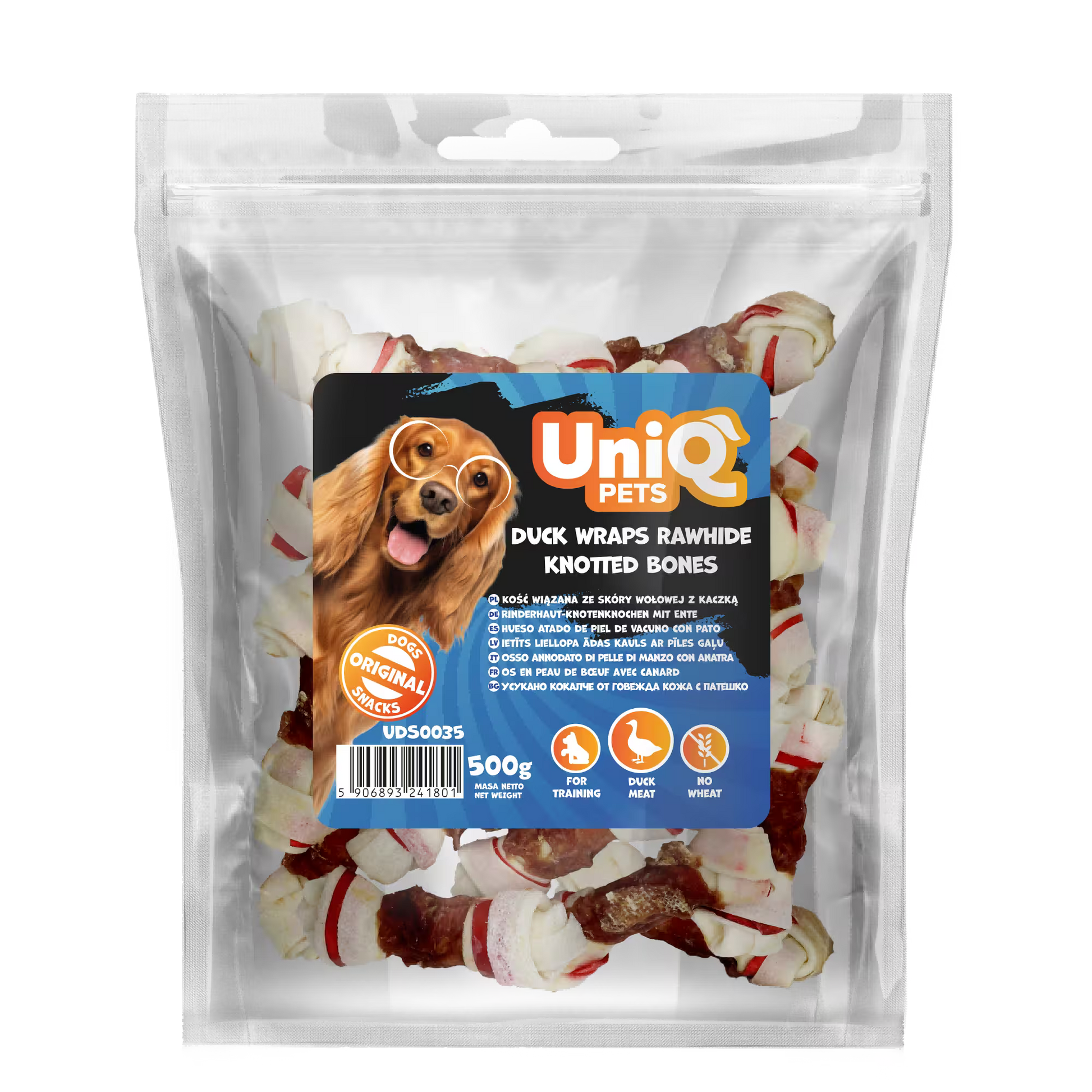 UniQ poslastice za pse, 500g, kosti od sirove kože sa pačetinom